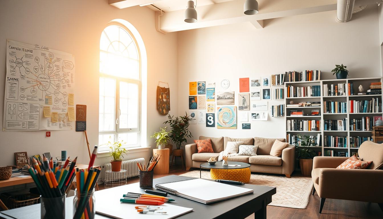 Creating a space that inspires, not restricts, is key. Start with small changes like adding plants, opening windows, or using calming art. These simple steps can turn any space into a creative surroundings full of ideas.